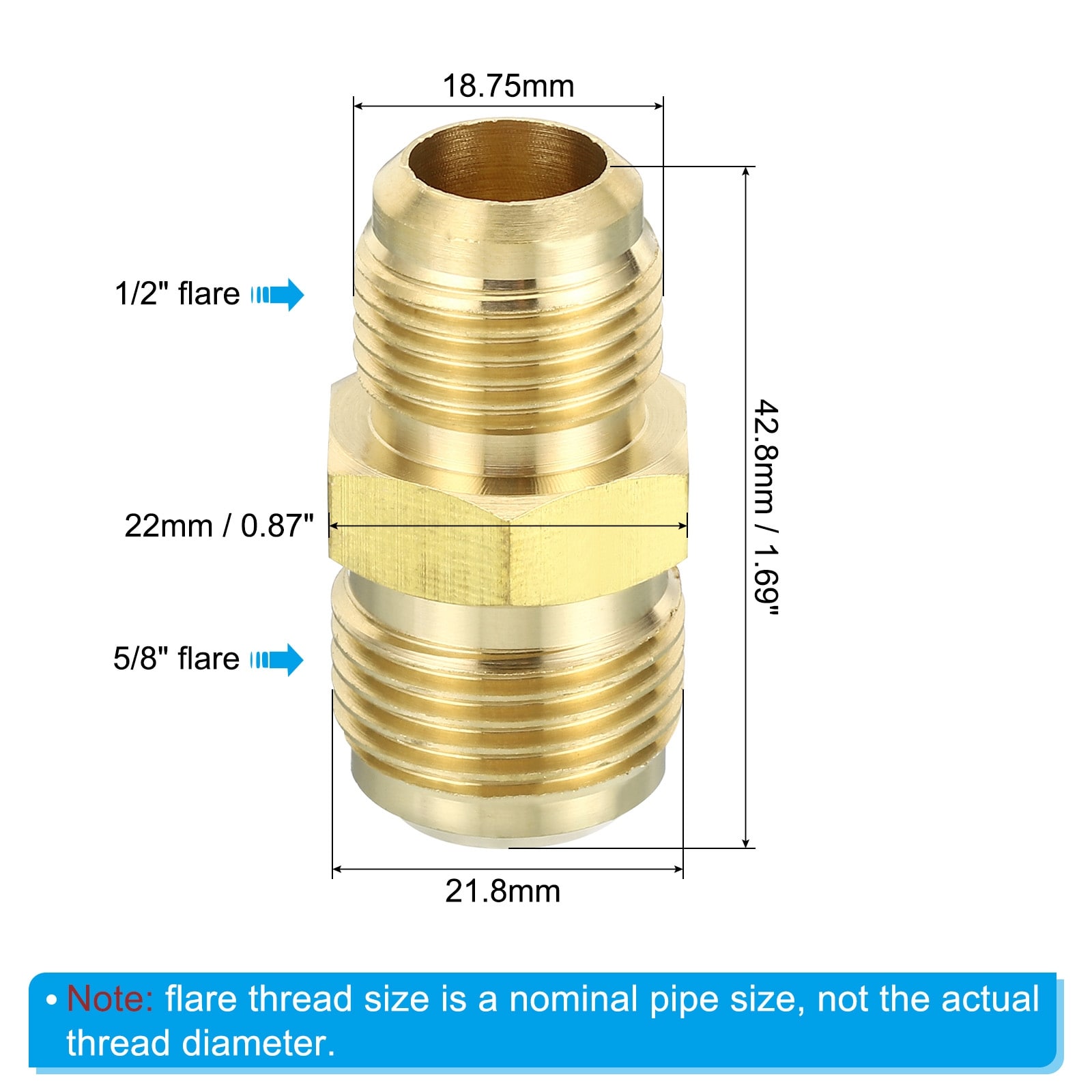 Brass Pipe Fitting, Pipe Adapter Flare Tube Fitting for Air Gas Line Refrigeration HVAC - Brass Tone