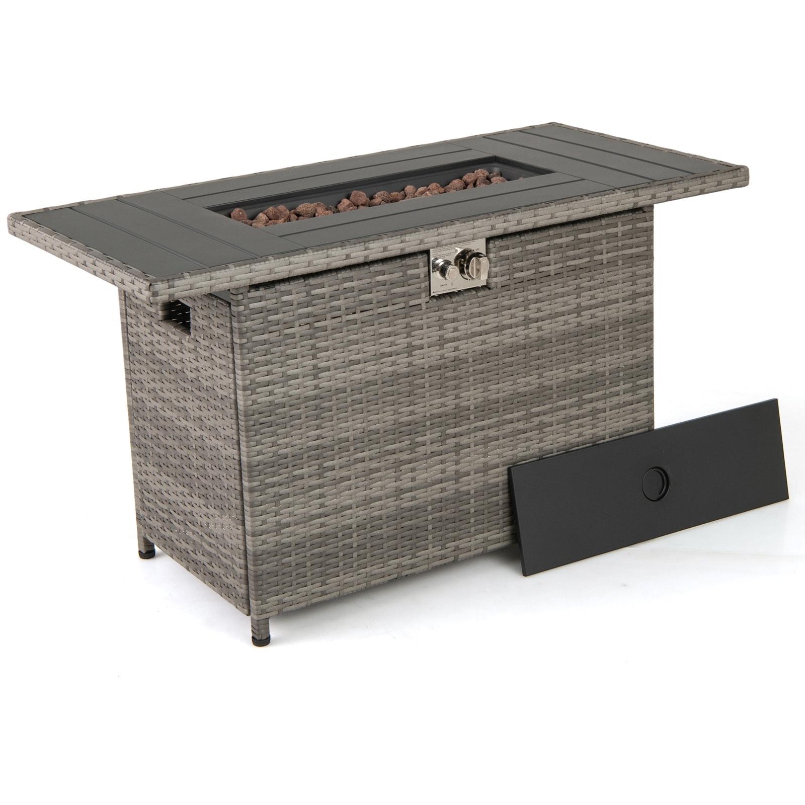 Propane Fire Pit Table 50000 BTU Outdoor Patio Heater with PE Rattan Coffee Table and Stainless Steel Burner