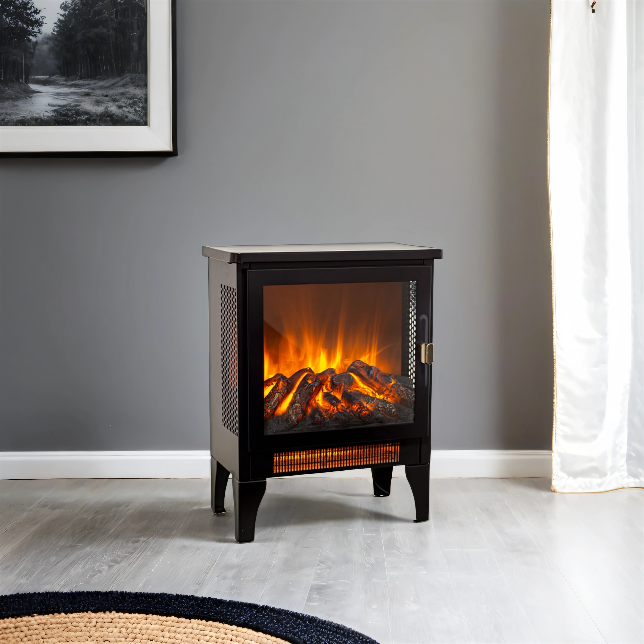 17 Inch 3-Sided Electric Portable Heater w/ 3D Flame, 2 Heat Settings