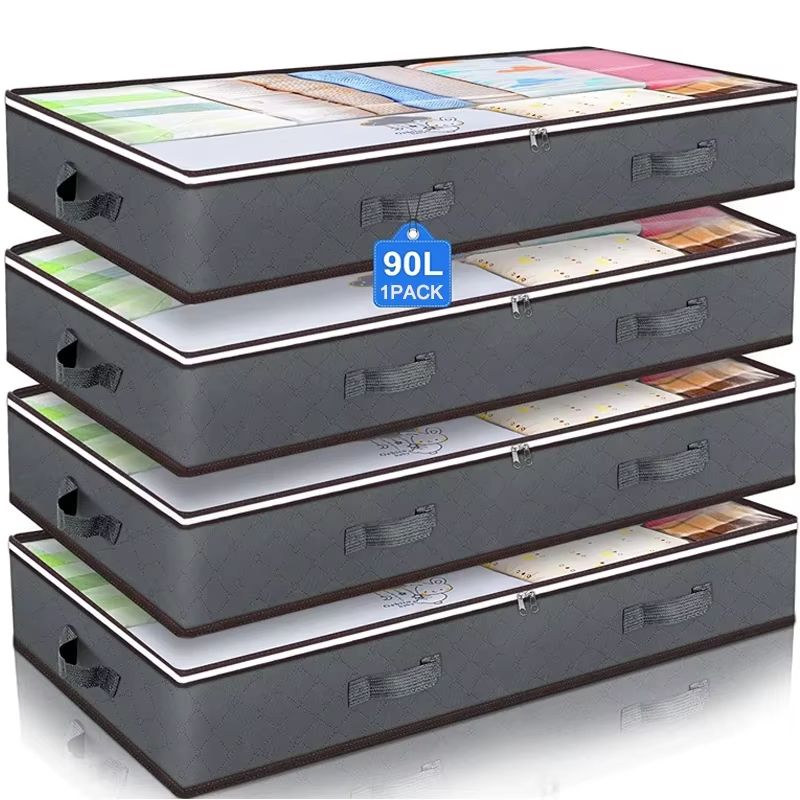 Ultra Slim Non Woven Under Bed Quilt & Clothes Storage Bag (100 X 50 X 15 Cm, Dust & Moisture Proof) 1pack Black