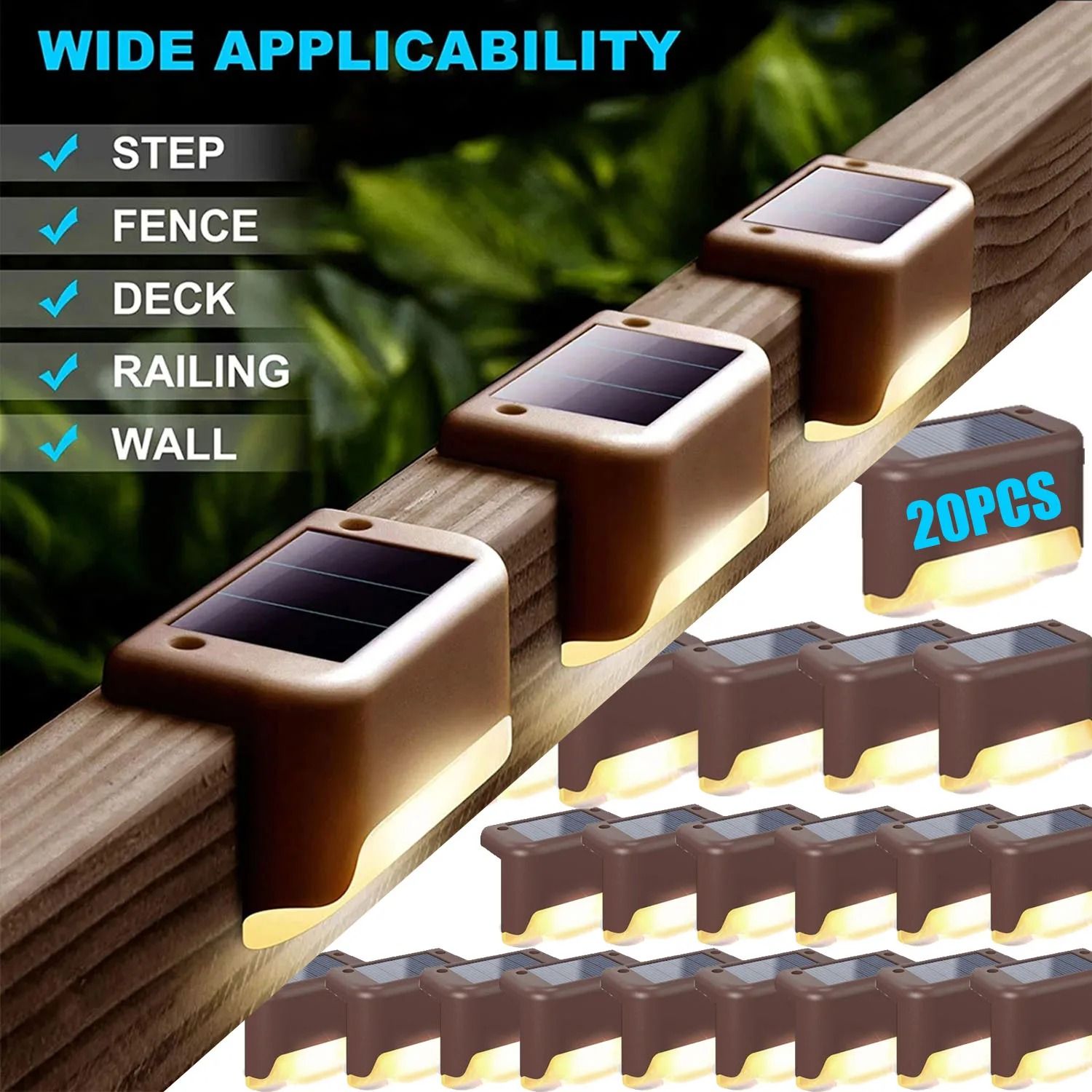 Solar Deck Light Outdoor Waterproof Step Lamp brown Shell White 12pcs