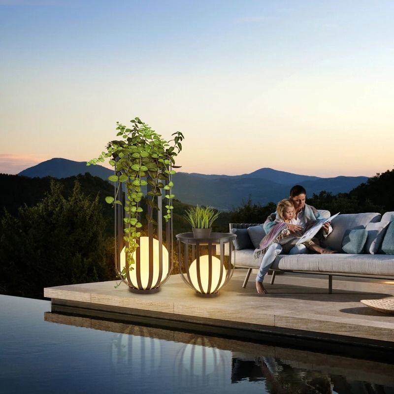 Elegant Outdoor Patio Light For Garden Tea Tables Courtyard Decor mains D56x55cm carbonized Steel