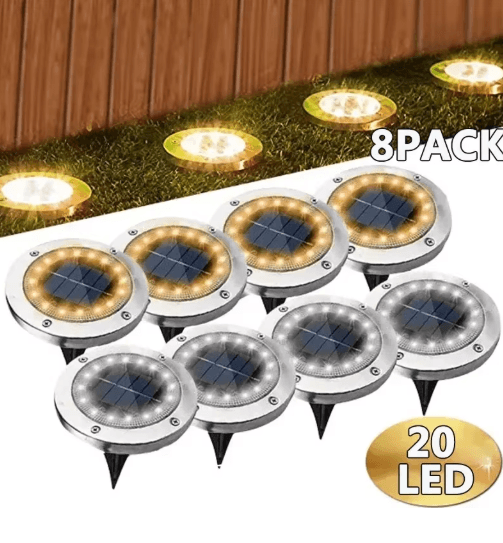 LED Solar Ground Lights Waterproof Buried Solar Disk Lights For Garden & Pathway 20led warm White 8pcs