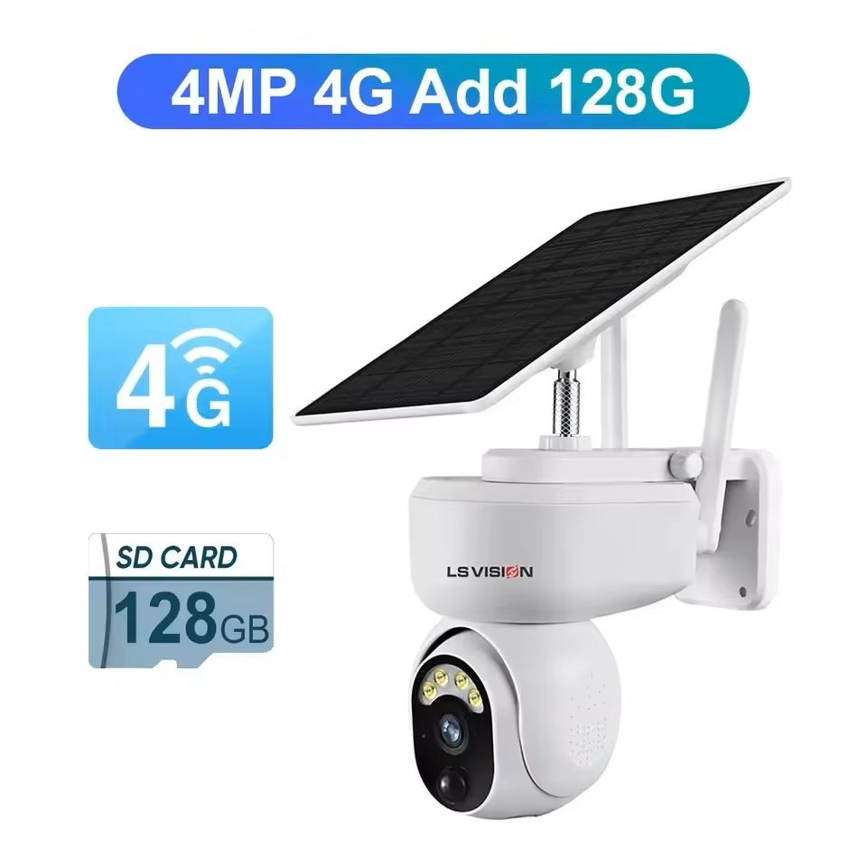 4MP Wireless PTZ Security Camera With Motion Detection And Solar Power + 128gb 4mp 4g