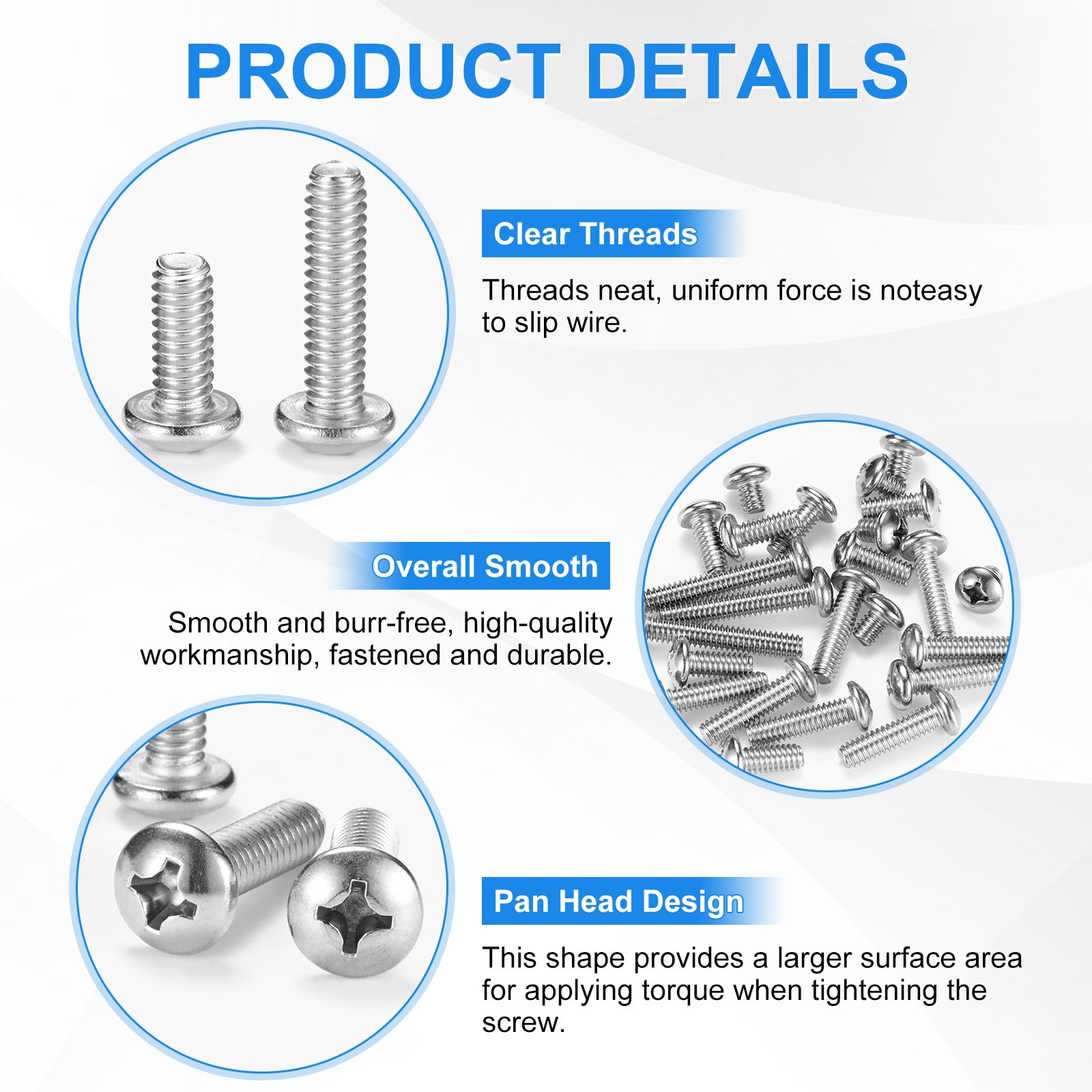 Pan Head Machine Screws Stainless Steel Phillips Drive Pan Head Screw Cross Head Fully Threaded Bolts - Silver