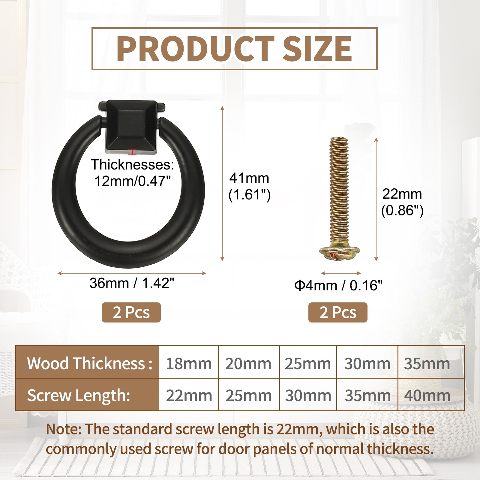 2Pack 1.42" Zinc Alloy Drawer Ring Pull Handles for Cupboard, Black