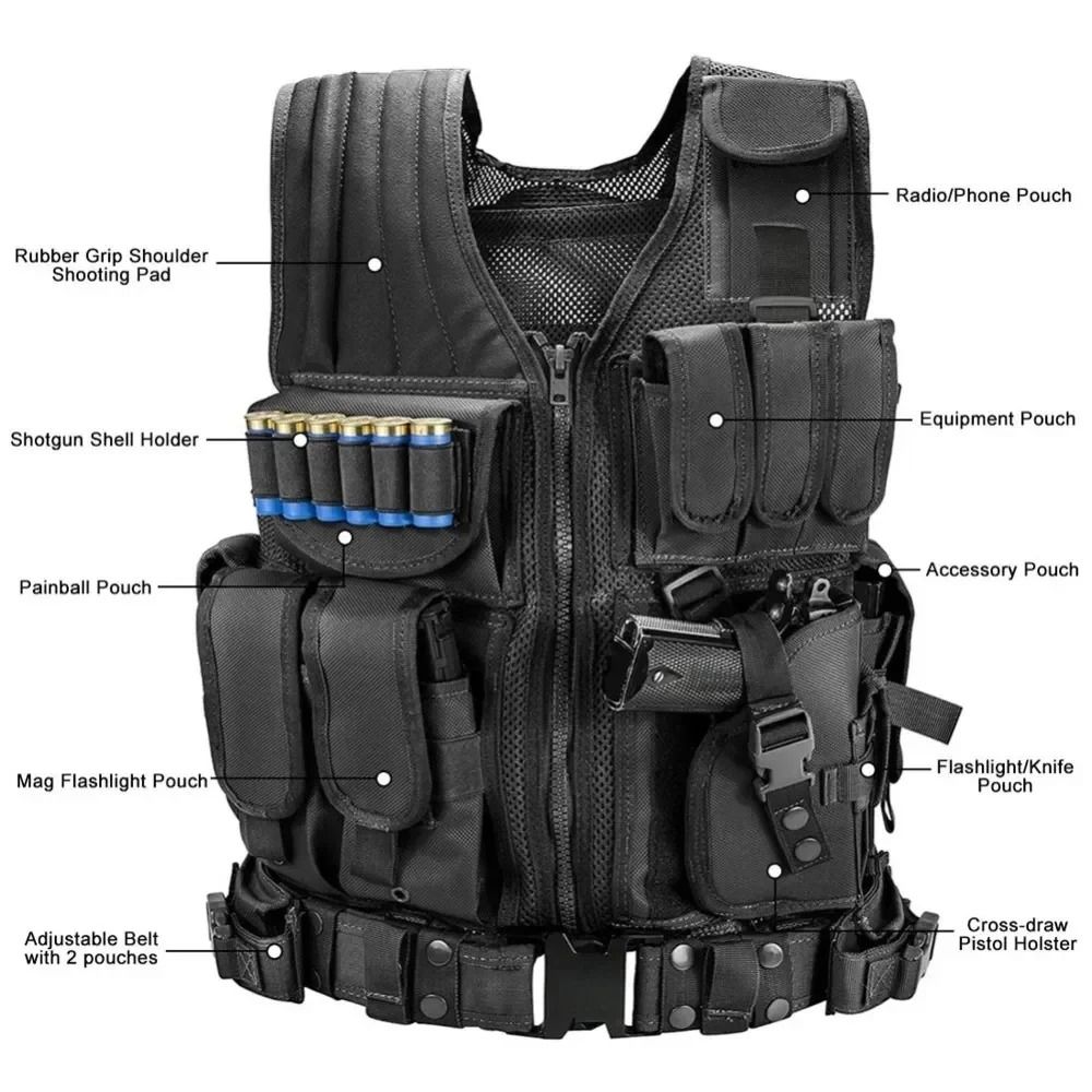 Tactical Multi Pocket Combat Vest For Outdoor Training And Airsoft grey Camo