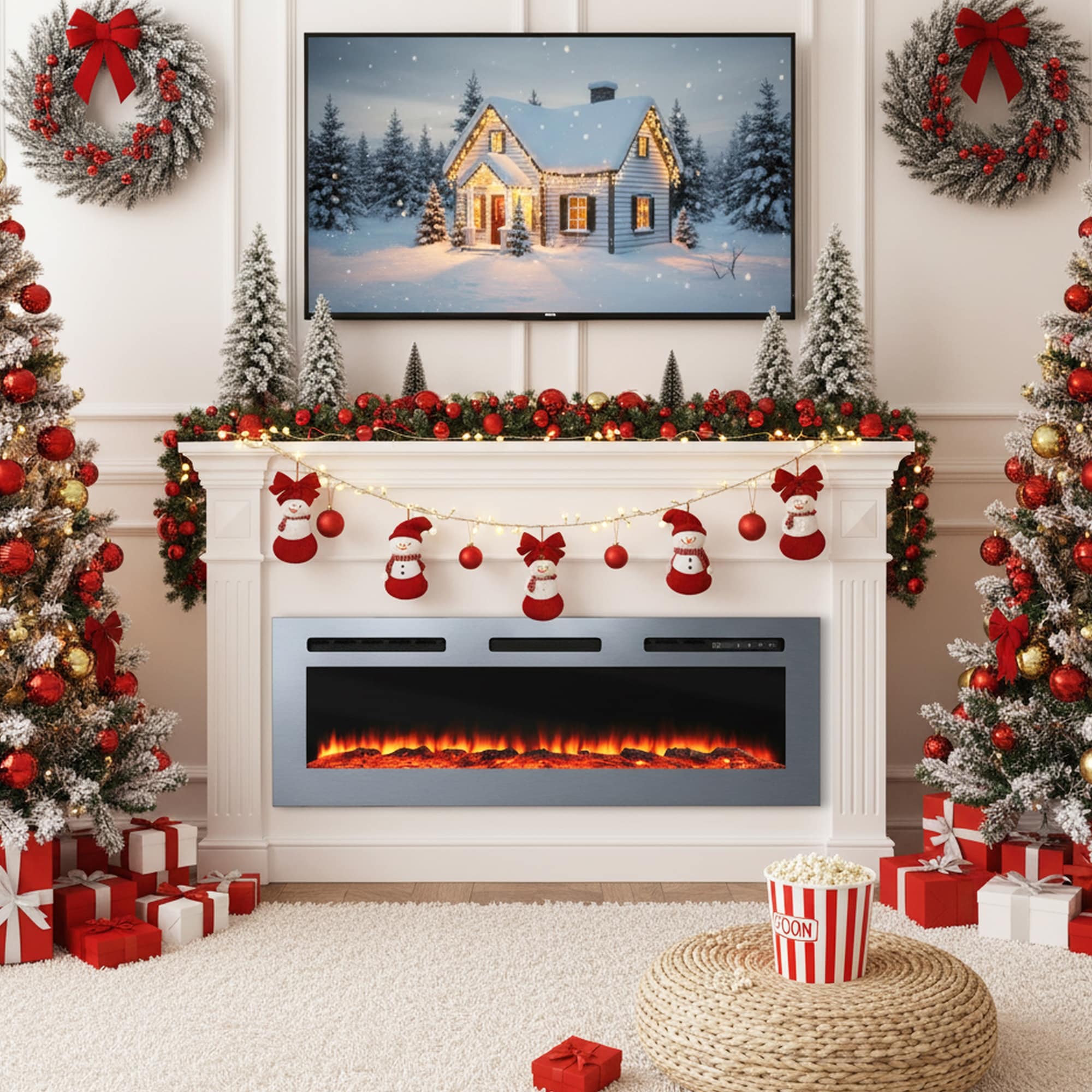 Wall Mounted & Recessed Electric Fireplace with 12 Flame Colors