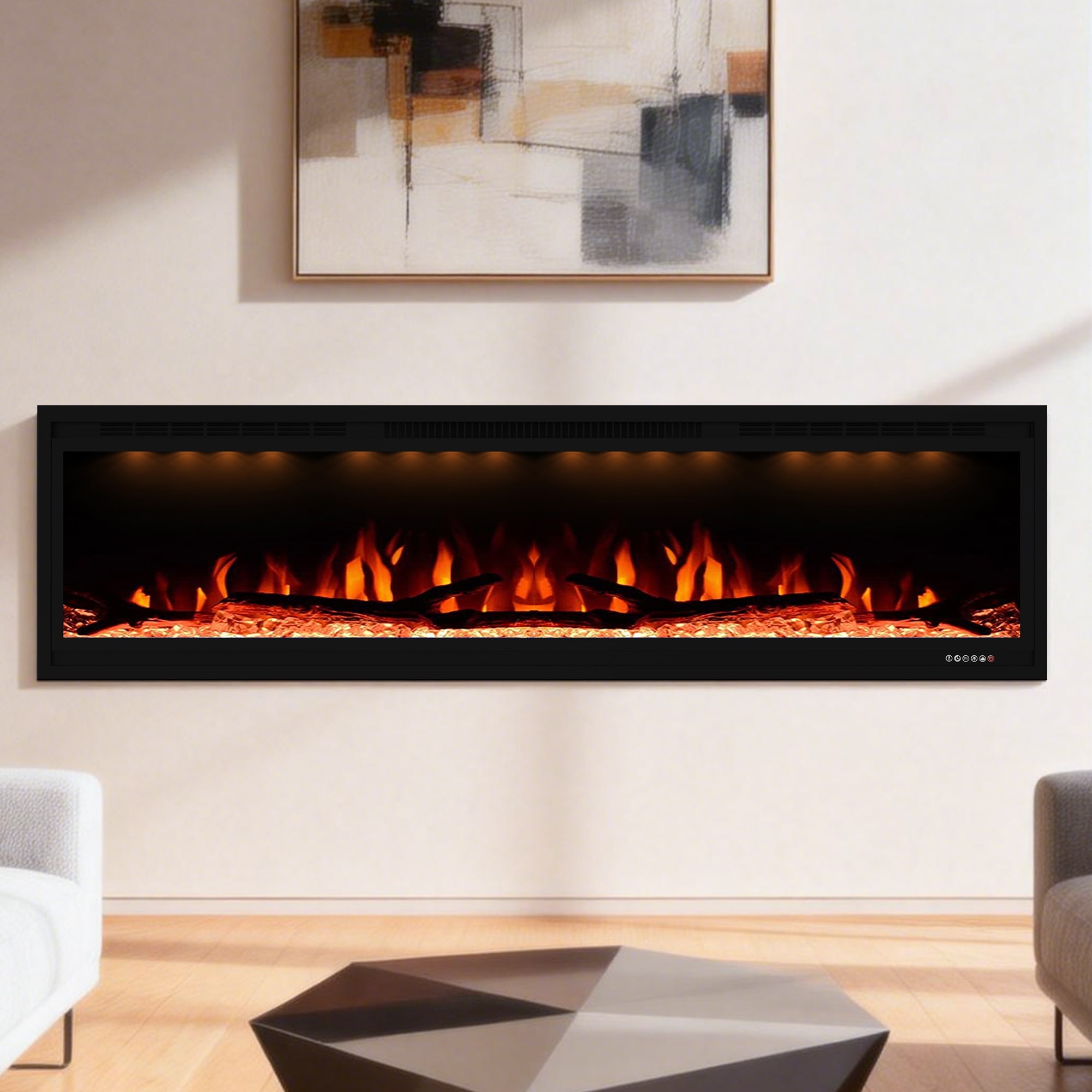 72" 1500W Inserted Wall Mounted Modern Linear Smart Electric Fireplace Heater with APP Control and Remote