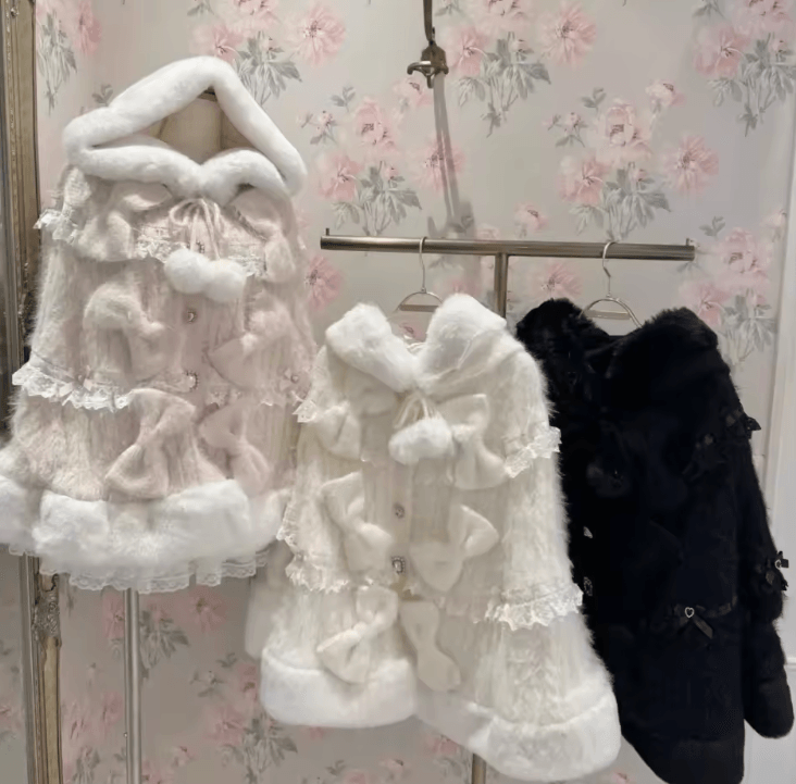One Size Japanese Big Ribbon Hooded Knitted Cloak Poncho Soft Double Layer Womens Winter Cape Jacket pink