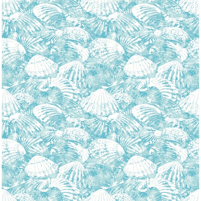 Brewster Surfside Aqua Shells Wallpaper - 20.5in x 396in x 0.025in