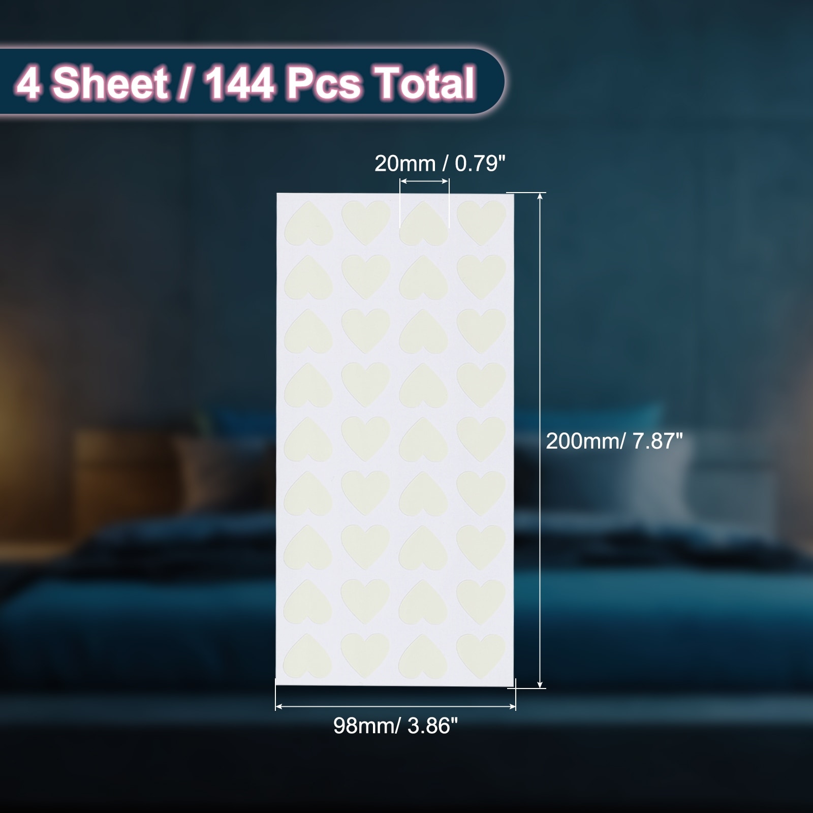 Glow in the Dark Heart Stickers, Heart Luminous Decor - 144Pcs