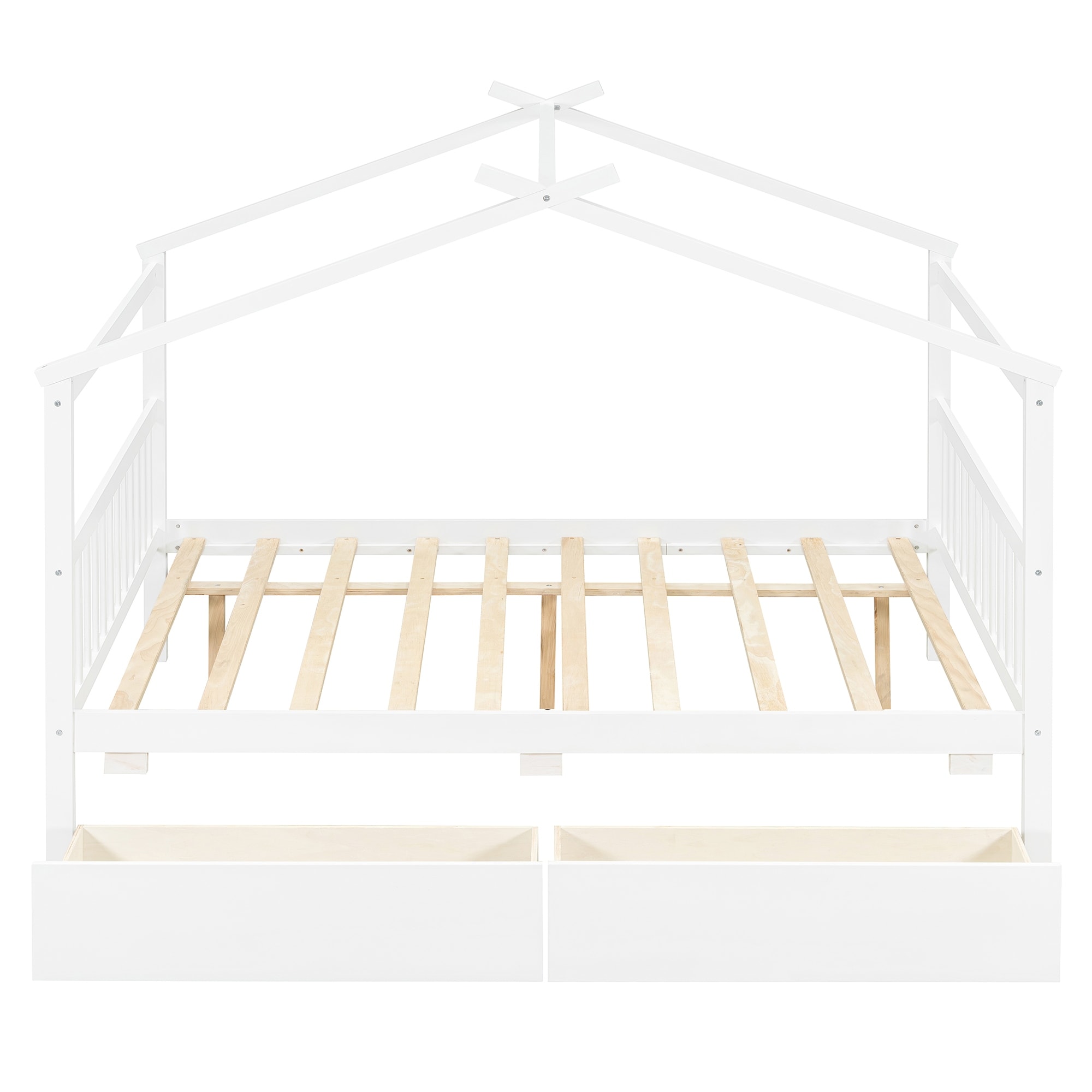 MimiHaven Wooden House Bed with Storage Drawers and Headboard
