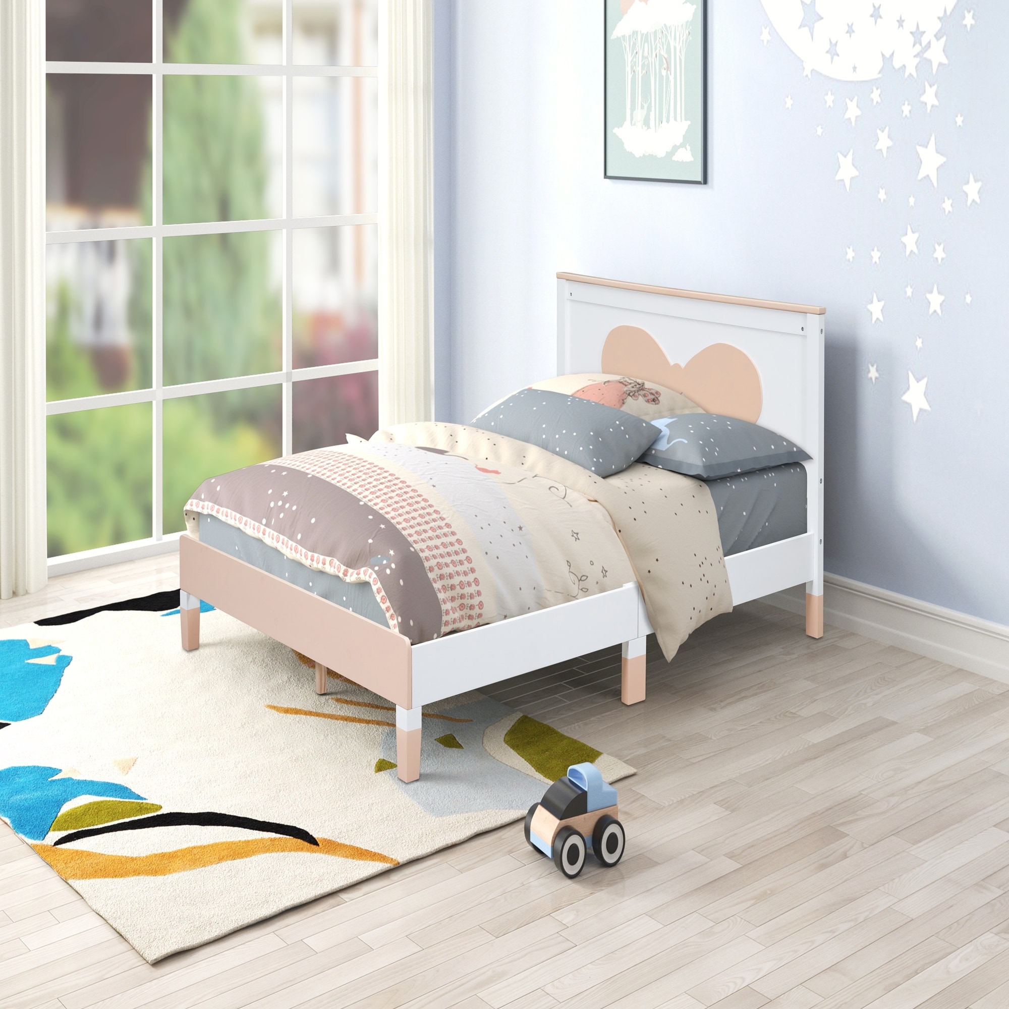 Twin Floor Bed with Safety Guardrail Montessori Storage Rack Bookshelf House