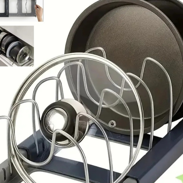Kitchen Organization Tools, Expandable Stainless Kitchen Cabinet, Adjustable Shelves, Board Drying Cookware a