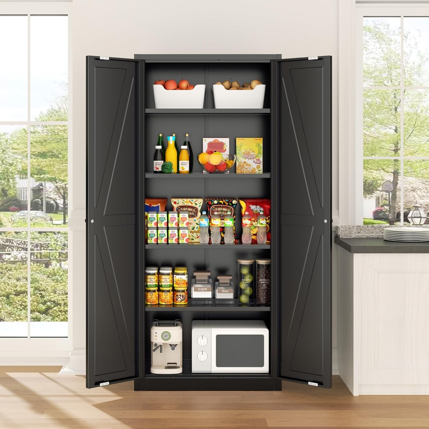 63'' Tall Kitchen Pantry Cabinet with Doors and 4 Shelves, Tall Kitchen Cupboard