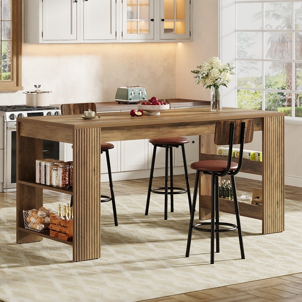 63 Inch Kitchen Island with Storage, Stationary Island Table for Kitchen, Dining Room, Living Room - 63.0" L x 19.7" W x 37.4" H