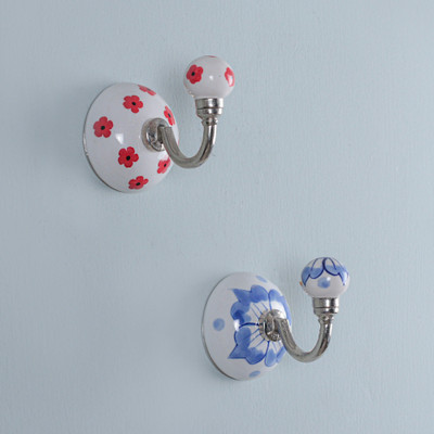 'Spring-Inspired Blue and Red Bloom 2-Piece Ceramic Hook Set'