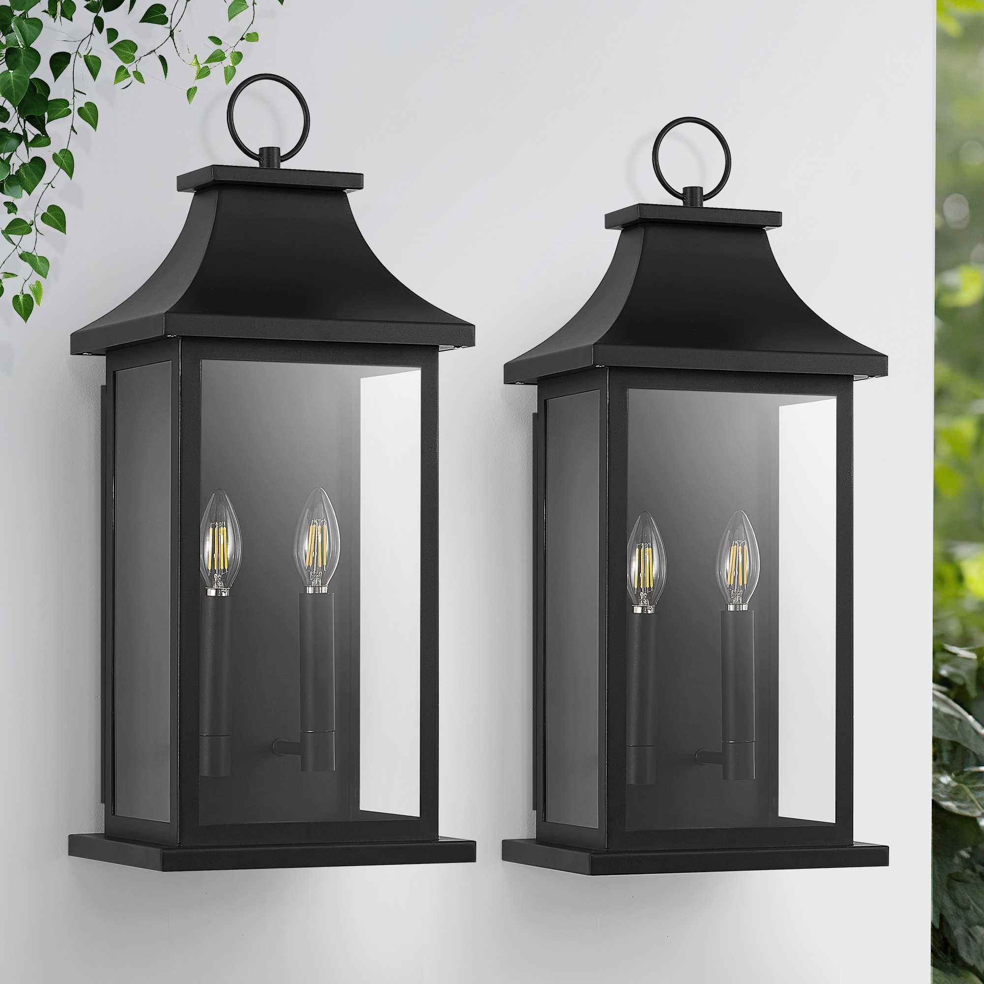 Vintage Outdoor Wall Light Fixture,17.5in&2-Light Glass Lantern,Exterior Waterproof Wall Lamp for Front Door/Yard/Patio(2-PACK)
