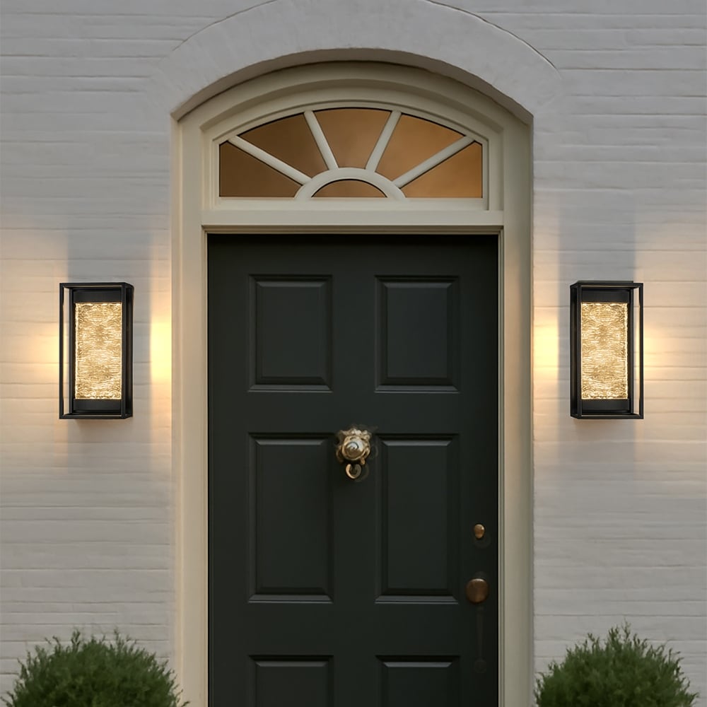 Modern Dusk to Dawn Sensor Matte Black Integrated LED Light Fixture with Handcrafted Textured Glass for Porch Garage (2 Pack)