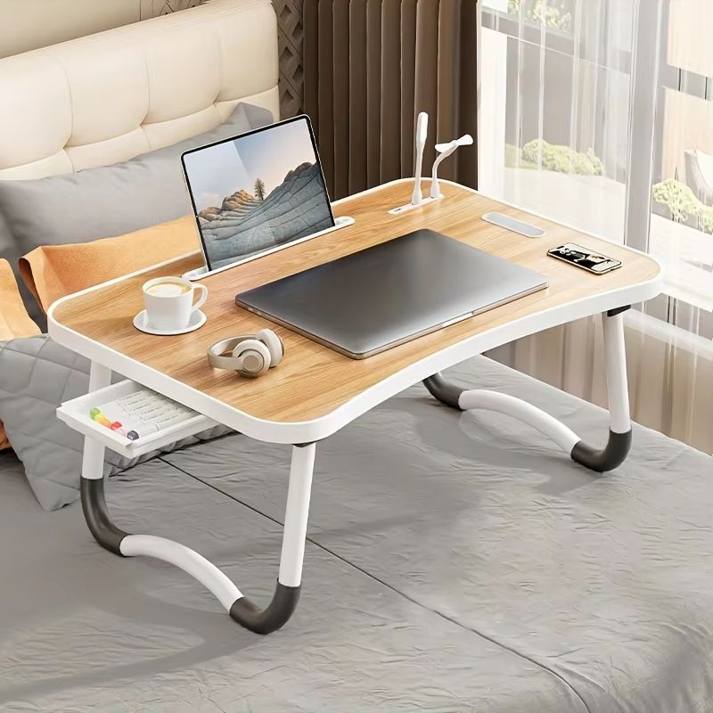 Portable Foldable Laptop Desk With USB Light, Cooling Fan, Cup Holder & Tablet Slot walnut
