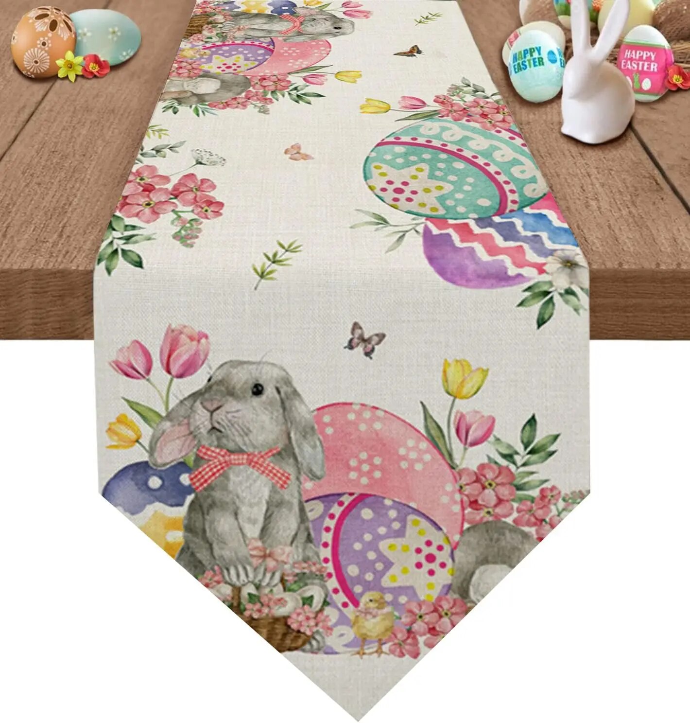 Easter Linen Table Runners: Bunny, Eggs, Flower, Tulip Washable Decor For Kitchen, Dining, Coffee Tables 150x33cm 59x13inch