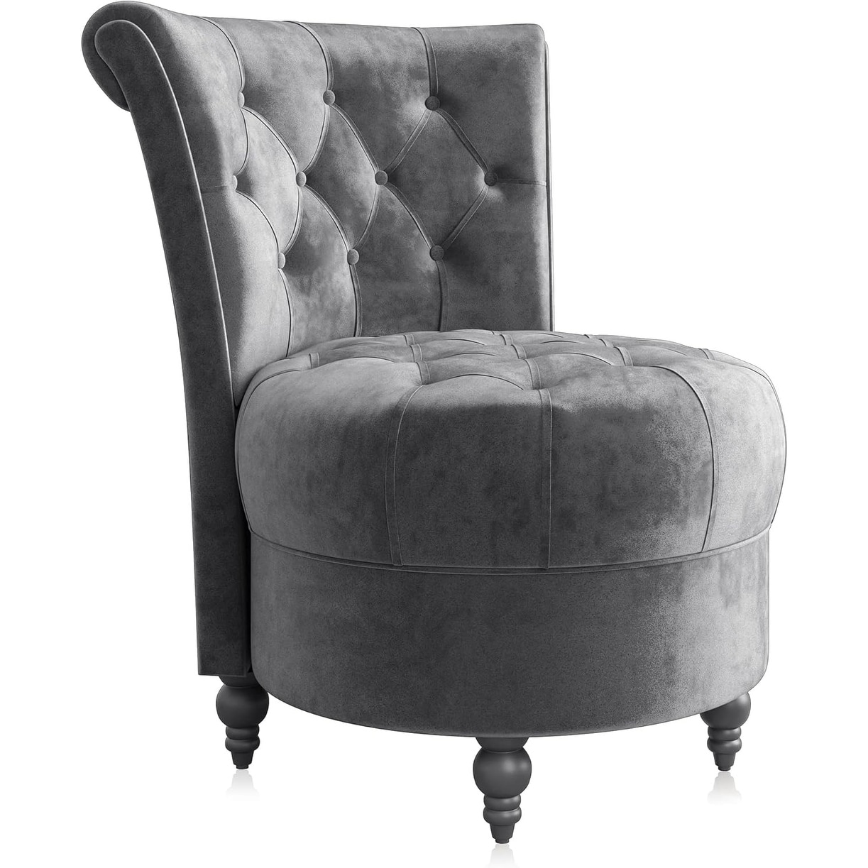 Grey Velvet Low Back Armless Accent Chair with Button-Tufted Detail and Thick Padding, Rubberwood Legs