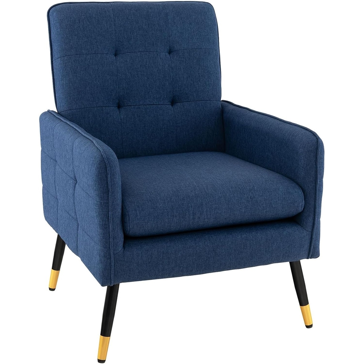 Modern Upholstered Accent Armchair with Metal Legs and Removable Cushion - Linen Blue