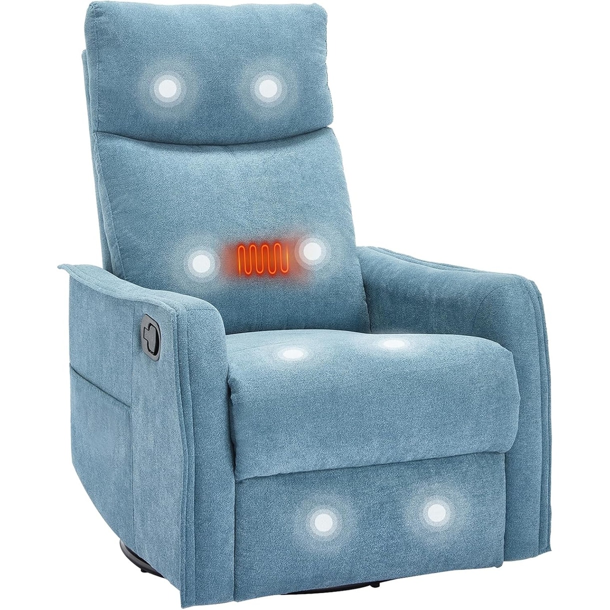 360 Swivel Rocking Recliner Chair with Heat and Massage, Blue