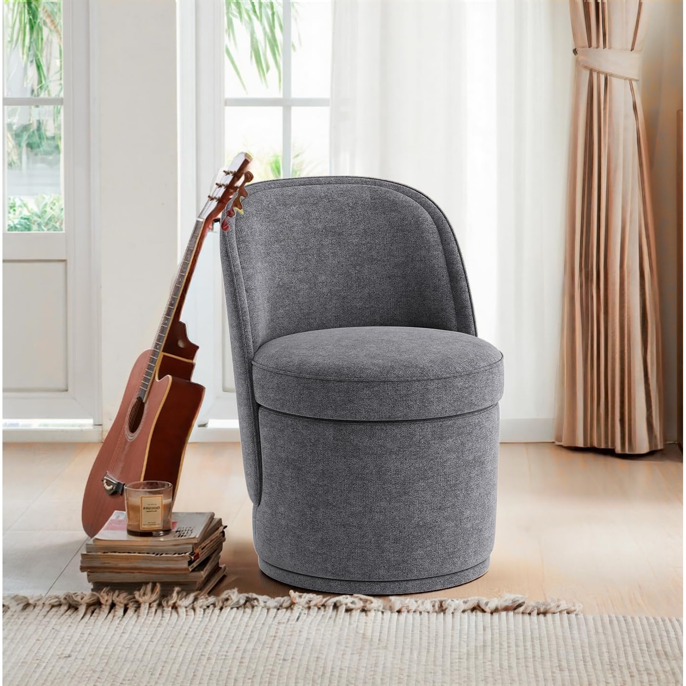 Swivel Accent Chair with Storage Ottoman, Modern Lounge Sofa Chair Barrel Chair Arm Chair with Nail Trim