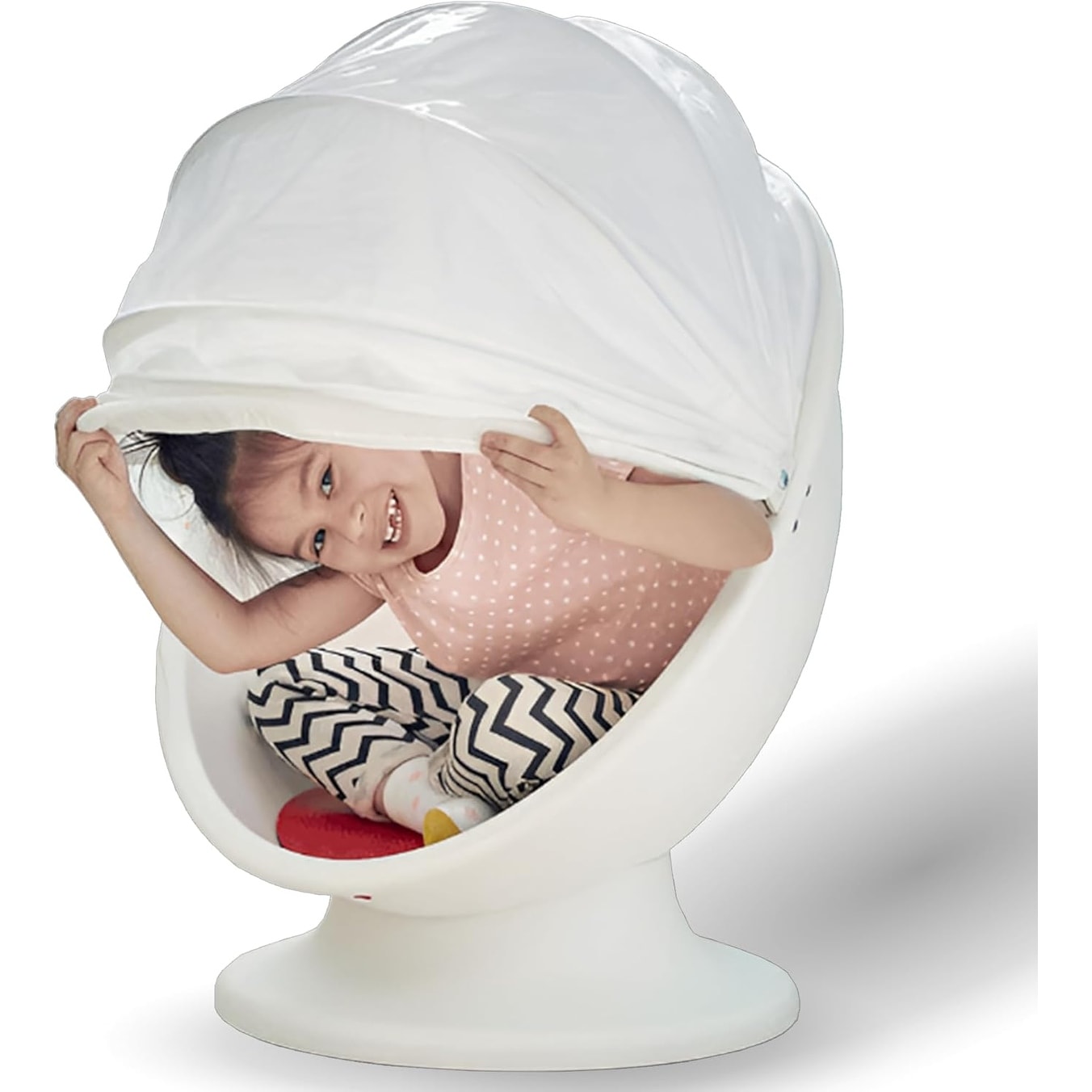 White and Red Swivel Spinning Chair with Non-Slip Seat for Home and Office Use