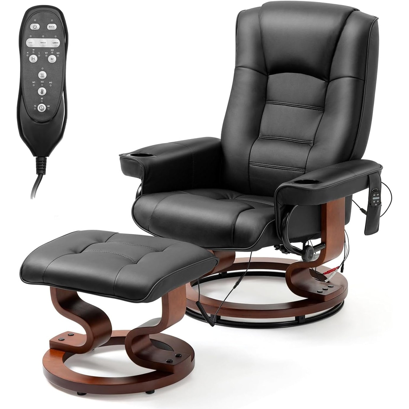 Electric Massage Recliner with Ottoman, Swivel Lounge Chair with Footrest and Adjustable Back