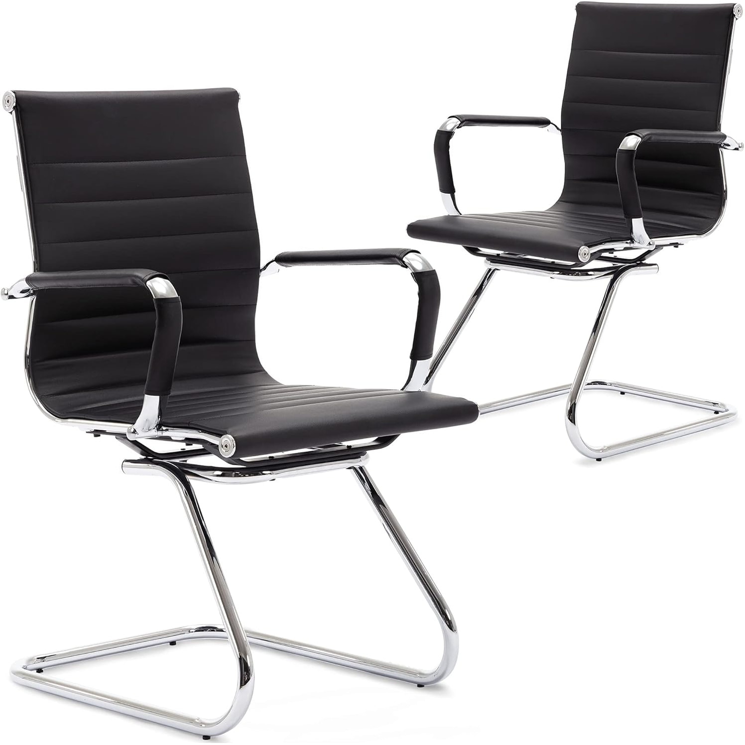 Set of 2 Leather Mid-Back Reception Chairs with Sled Base