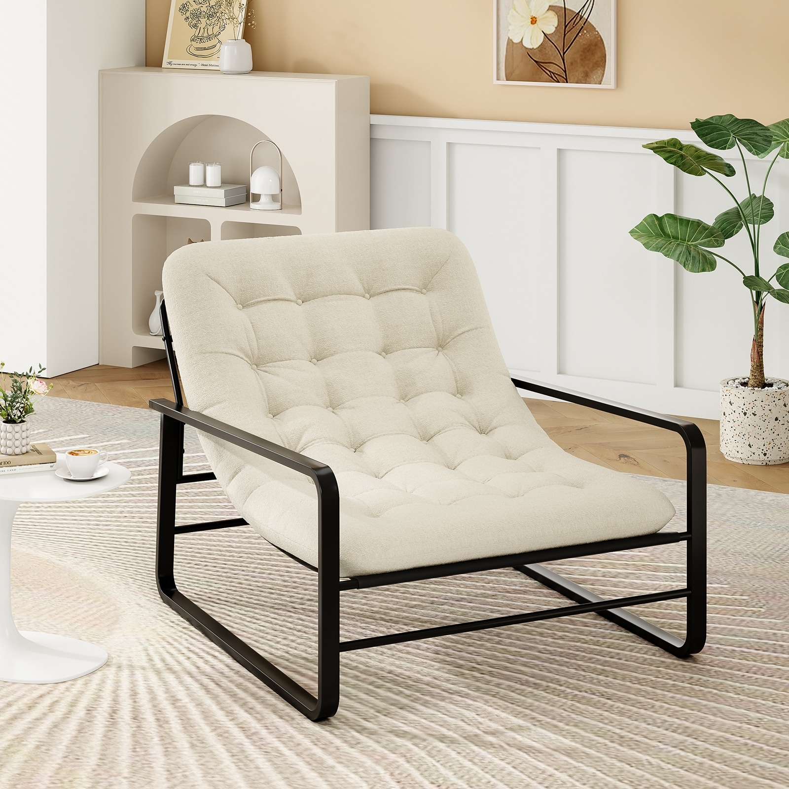Accent Rivet Tufted Polyester Armchair, Cream, Comfortable and Stylish Seating for Modern Interiors