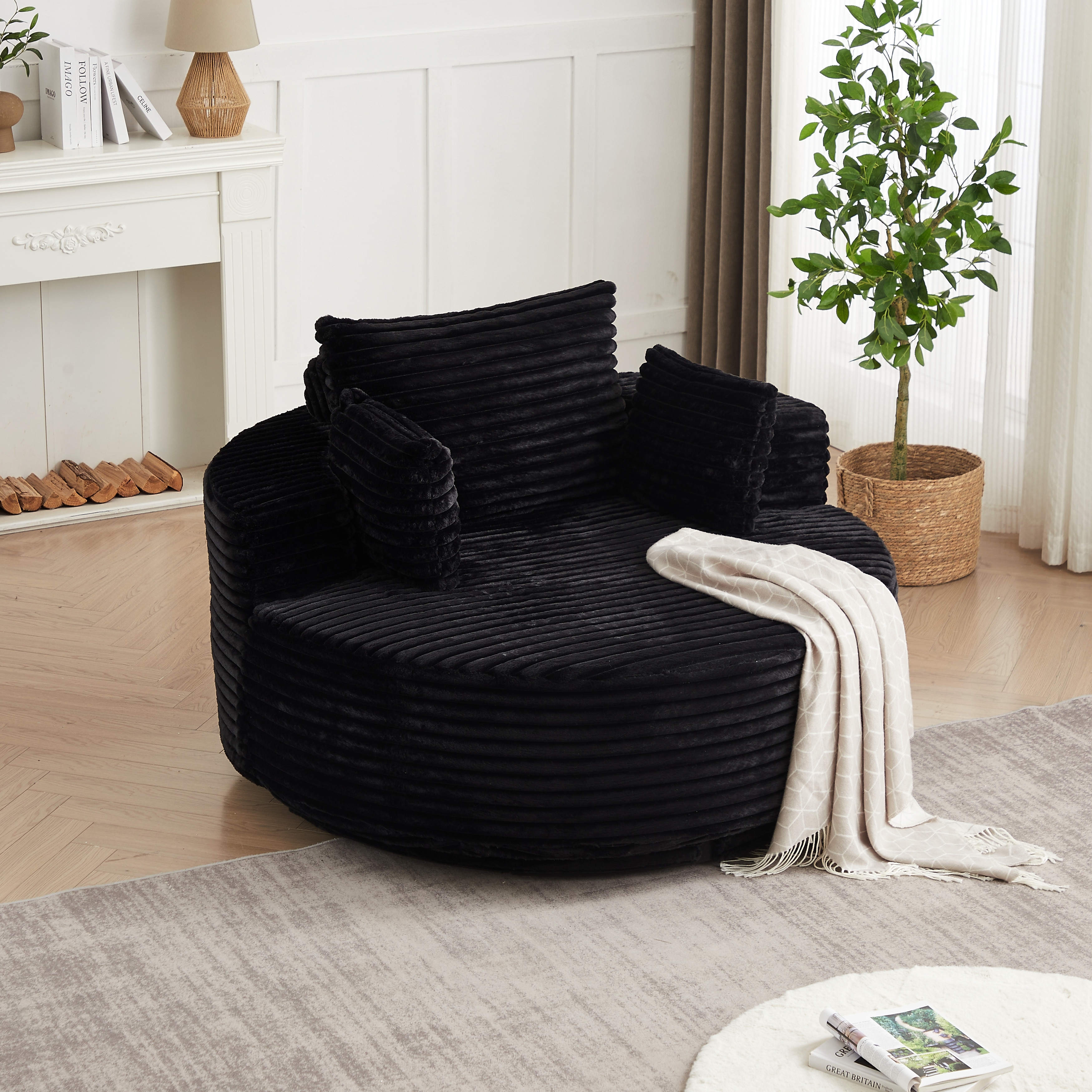 42" W Plush Corduroy Upholstered Chaise Lounge Sleeper for Living