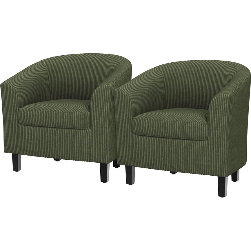 Corduroy Club Chair, Cozy Barrel Chair with Sturdy Wood Legs for Living Room Bedroom Reception Room, Set of 2, Dark Green
