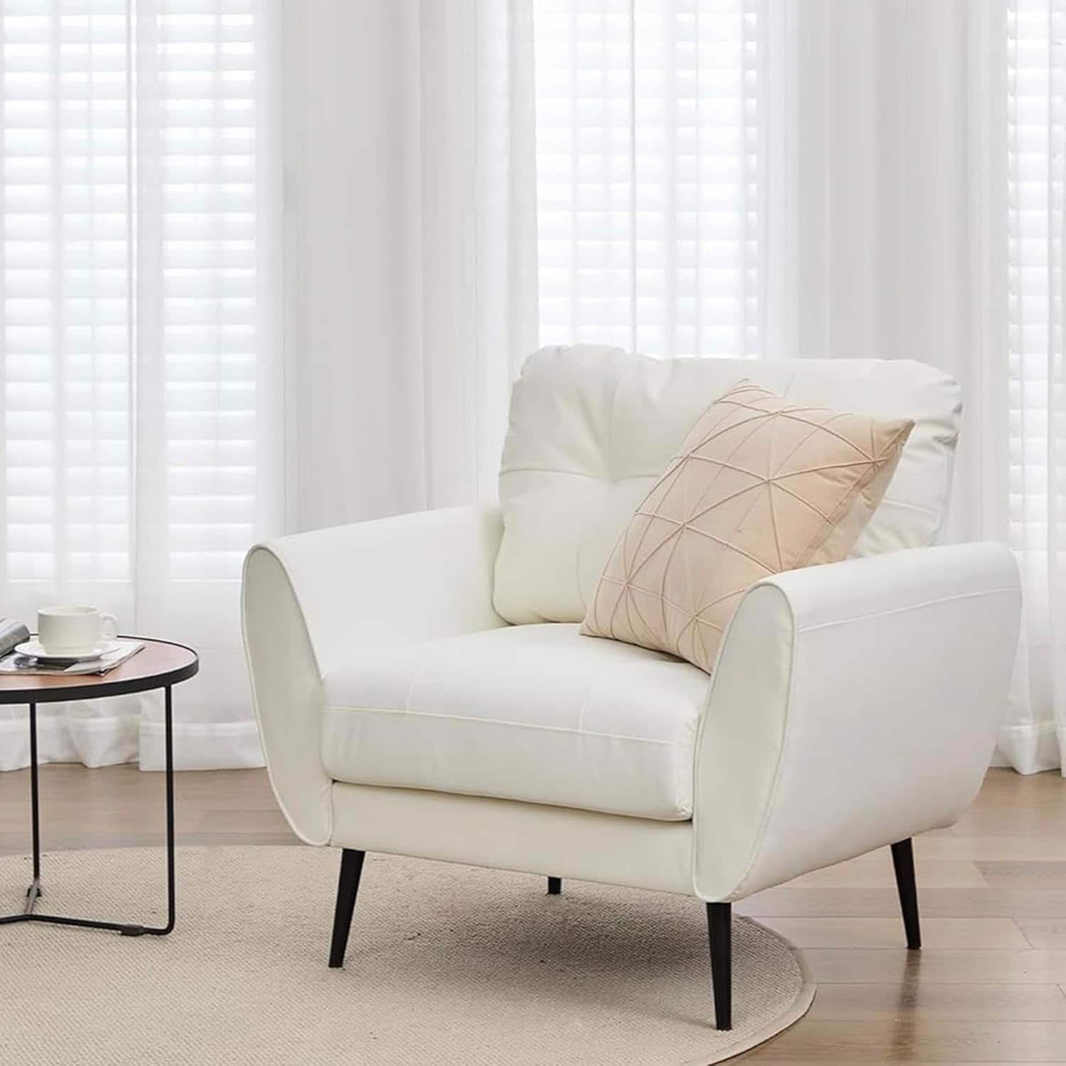 Modern White Leather Tufted Accent Chair, Mid Century Style for Living Room/Office