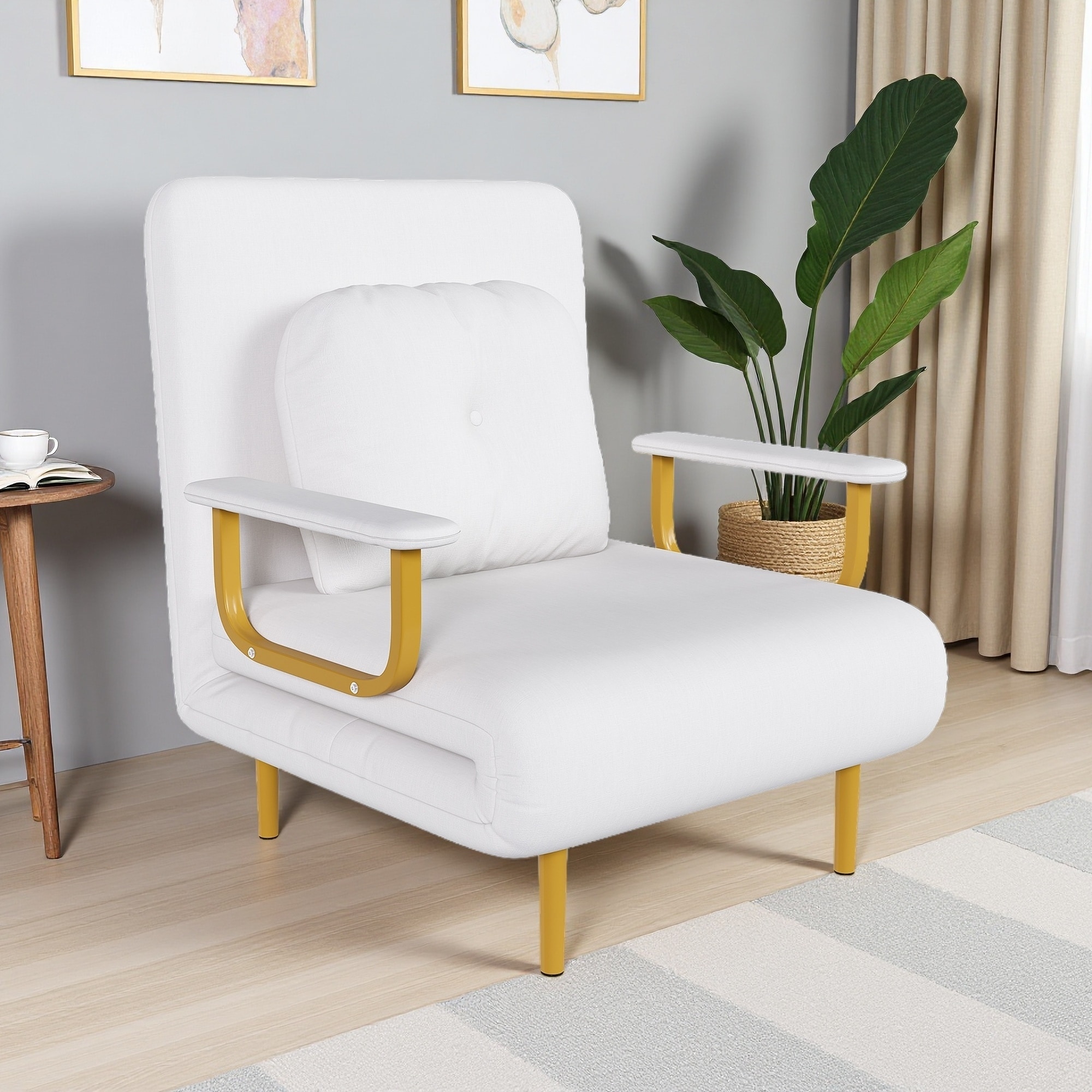 Compact Linen 3-in-1 Convertible Sofa Bed with 5-Position Backrest & Storage
