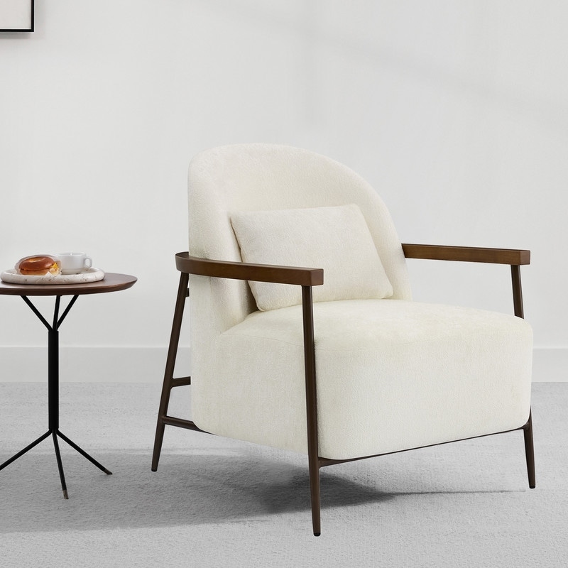 Anthony Modern Upholstered Faux Sherpa Chair with Wood Arms&Metal Legs