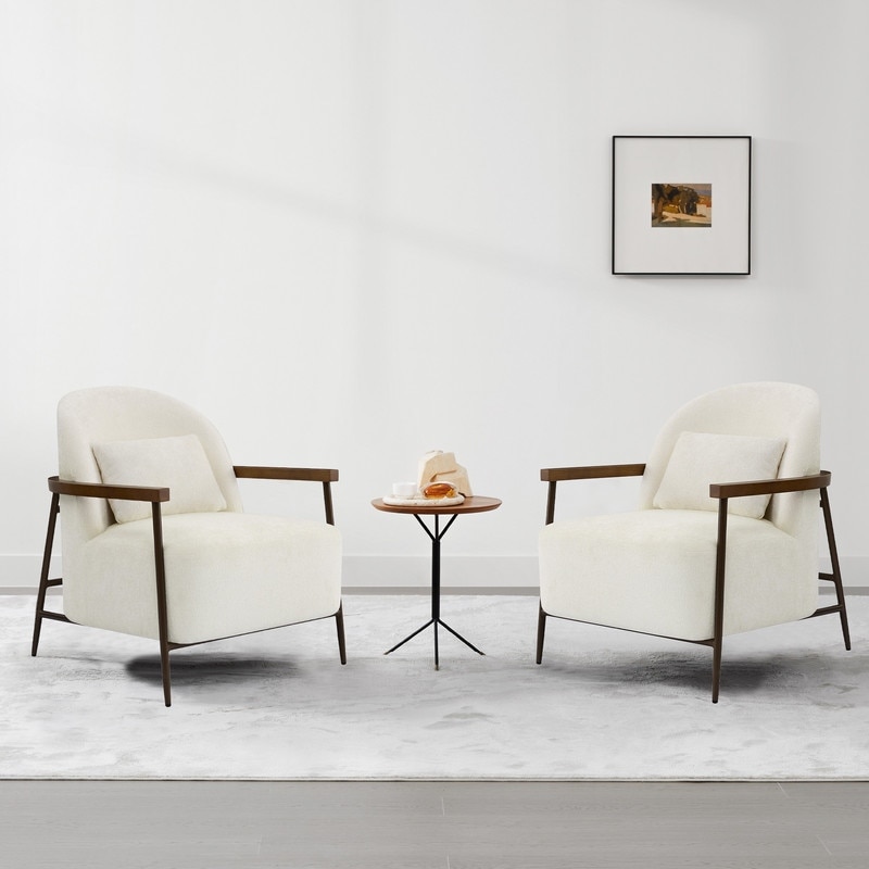 Anthony Modern Upholstered Faux Sherpa Chair with Wood Arms&Metal Legs