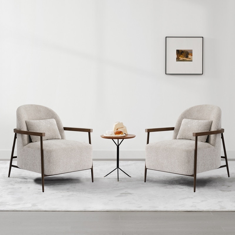 Set of 2 Fabric Sofa Chairs with Cushions, Comfortable Bedroom Armchairs