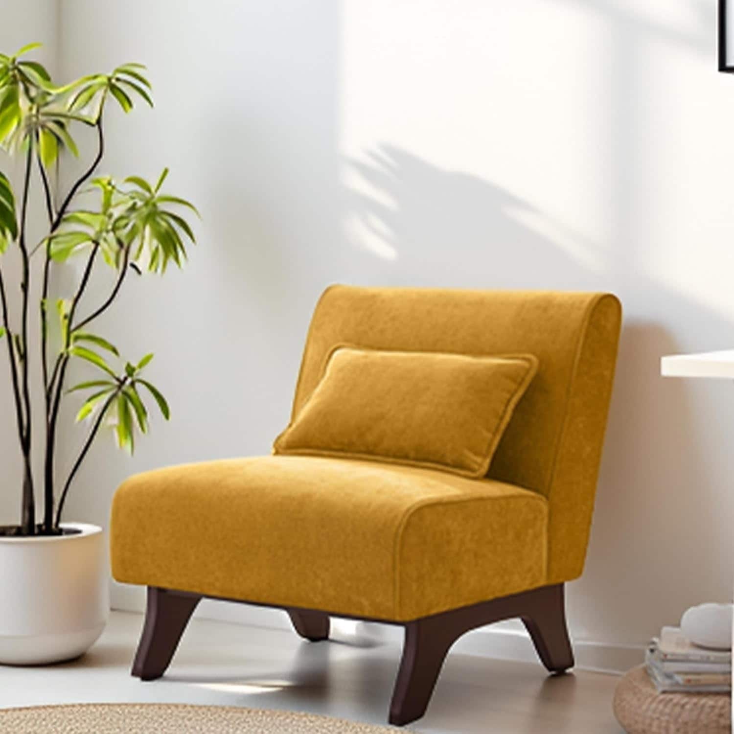 Upholstered Armless Accent Chair with Wooden Legs & Pillows for Living Room - Yellow