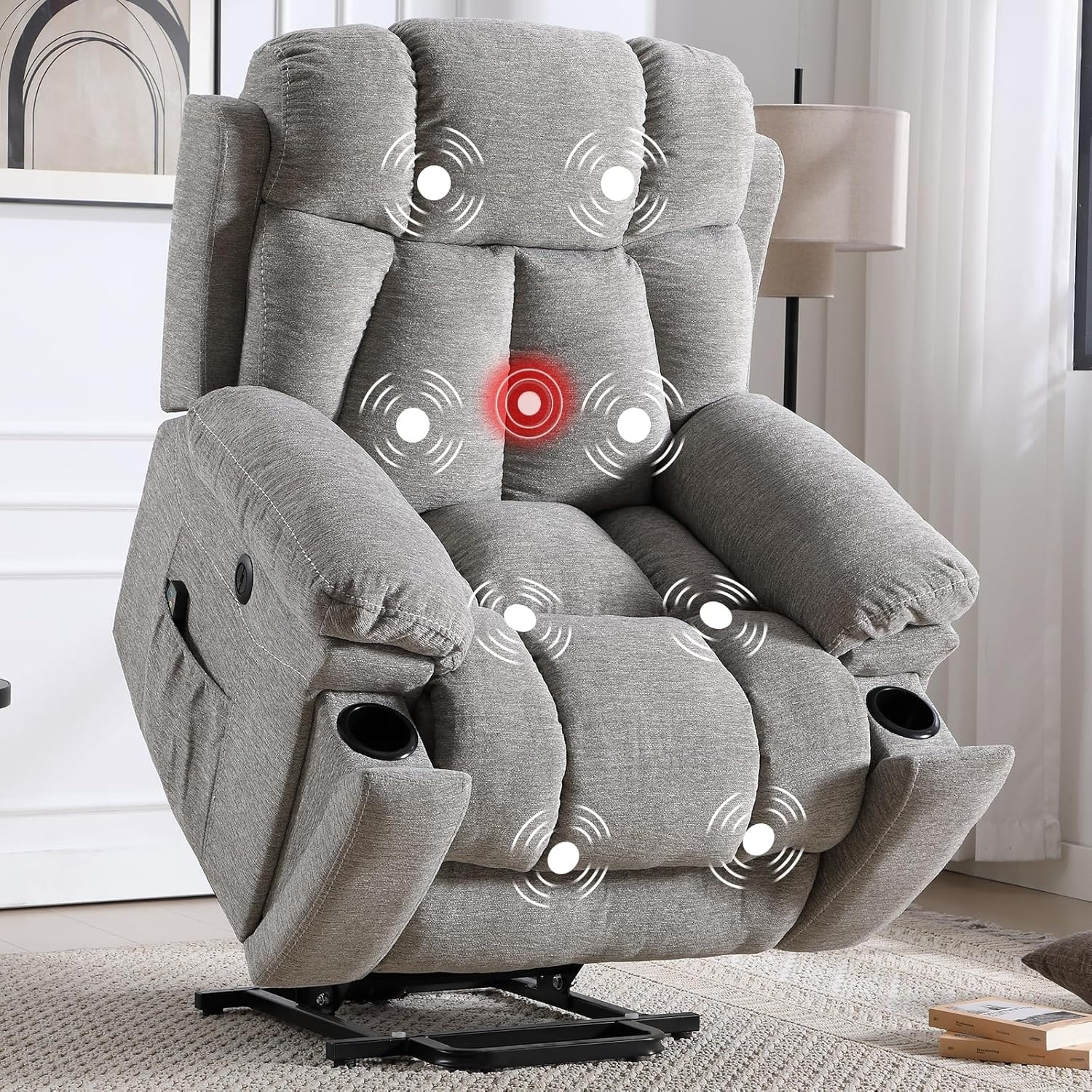Large Power Lift Recliner with Massage & Heat for Elderly & Big People, Anti-Skid Fabric, Gray