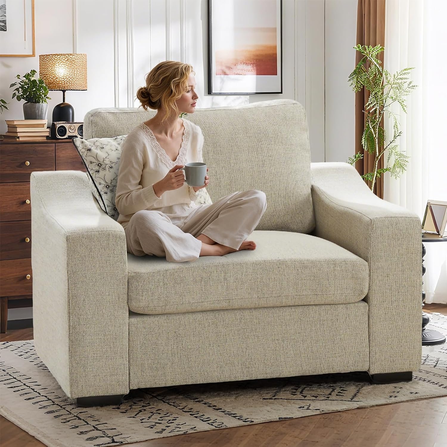Oversized Linen Accent Chair with Washable Covers, Deep Seat for Living Room or Office, Oatmeal