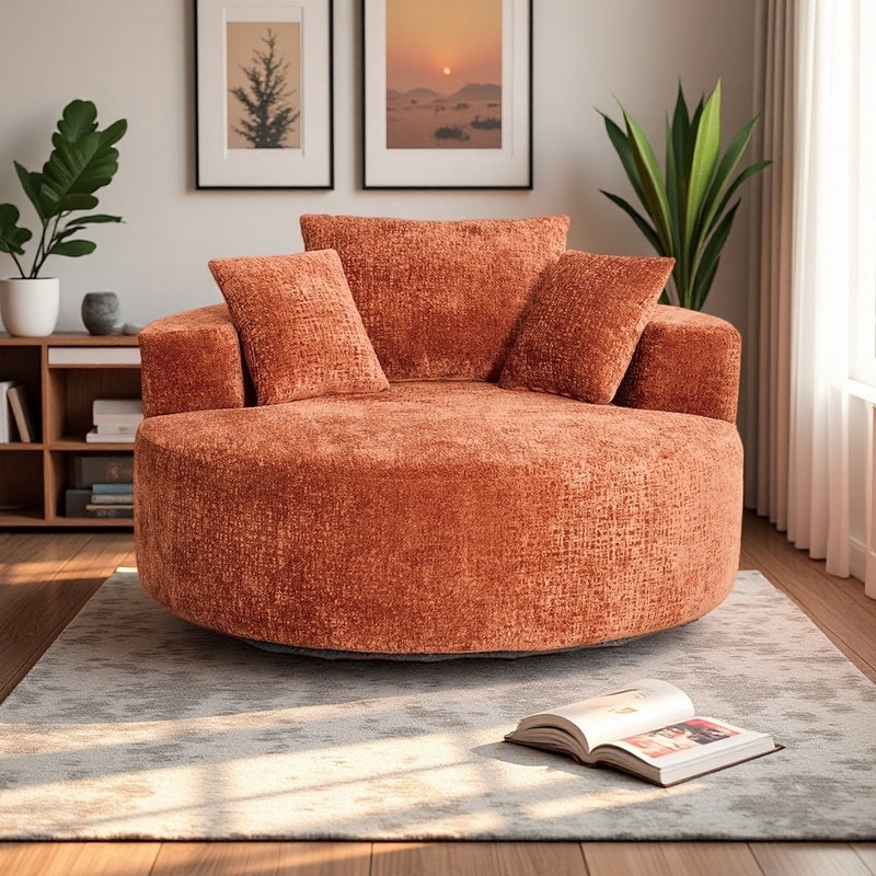 Chenille Swivel Barrel Chair with 360° Rotation