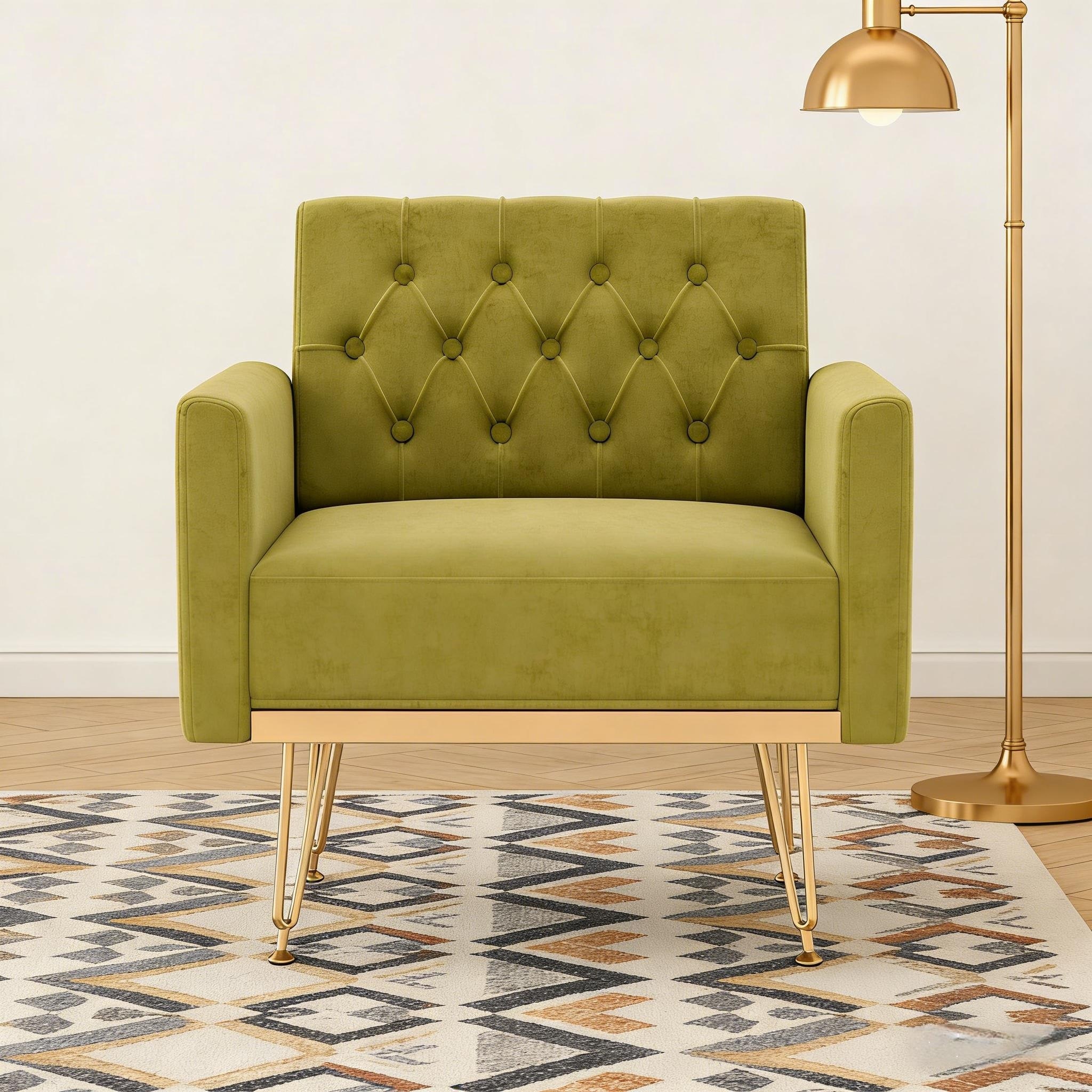 Accent Chair Velvet Upholstered Arm Chairs, Modern Reading Single Sofa Side Chair with Tufted Back and Gold Legs
