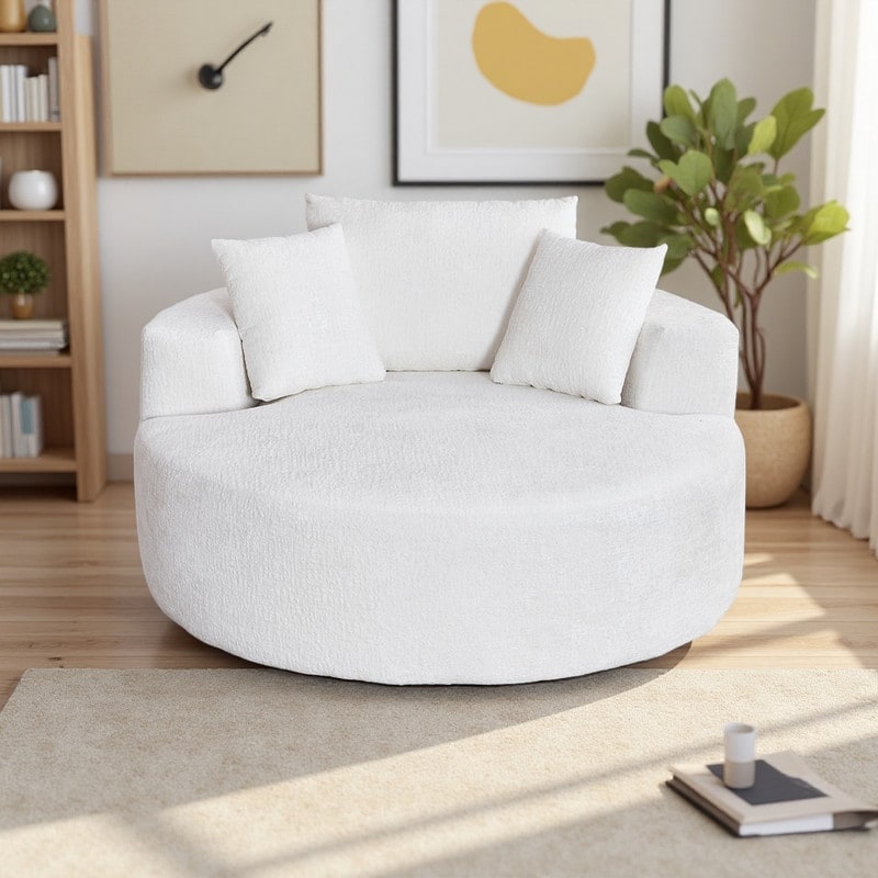 Roomfitters 360° Swivel Chair, Accent Barrel Chair with 3 Removable Pillows for Living Room, Bedroom, Office