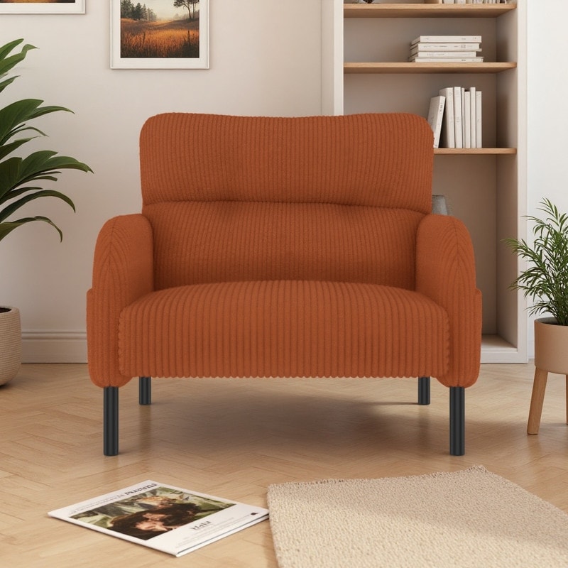 Upholstered Reading Chair with Soft Corduroy Fabric, Single Sofa Armchair Lounge Side Chair for Living Room & Bedroom