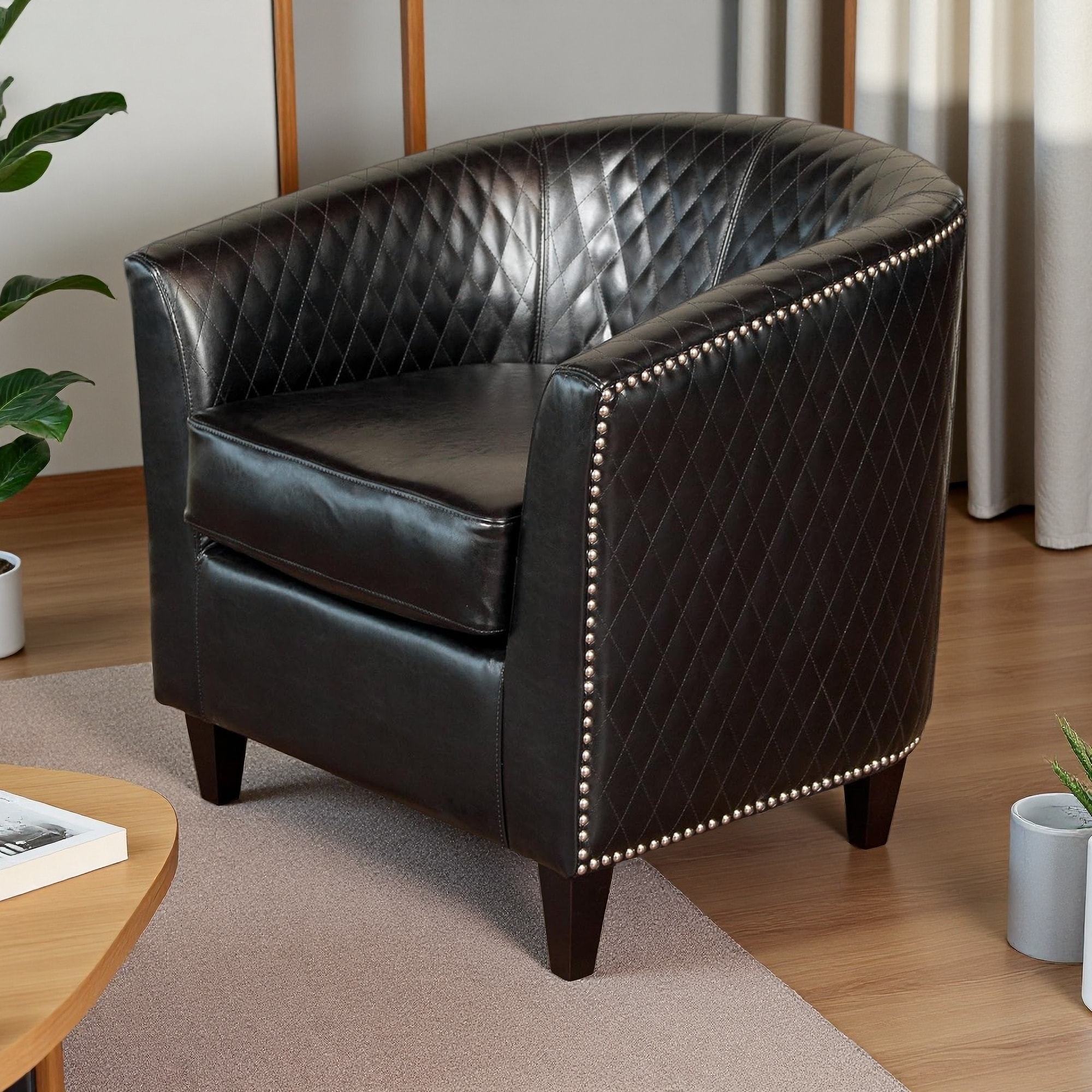 29.75" Faux Leather Quilted Club Chair with Studded Trim & Curved Back