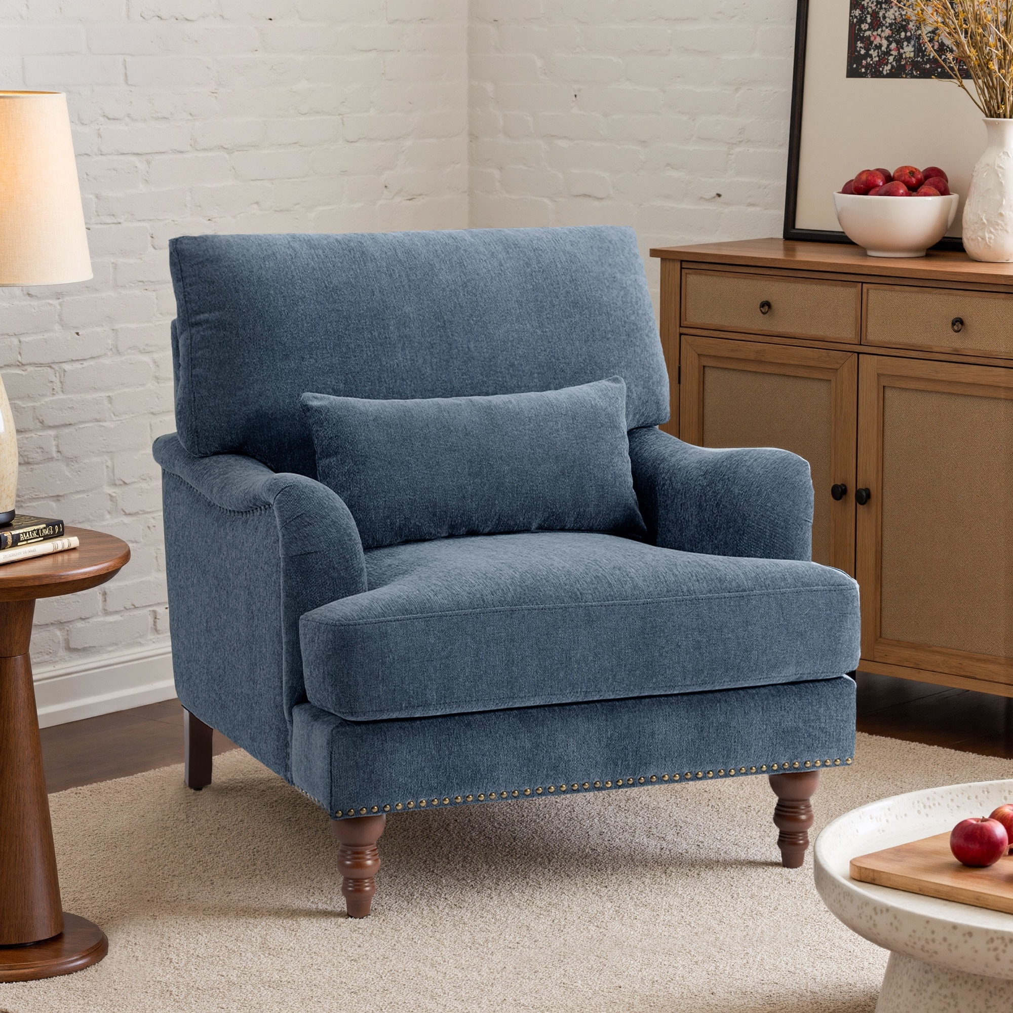 Chenille Accent Chair with Lumbar Pillow Nailhead Living Room
